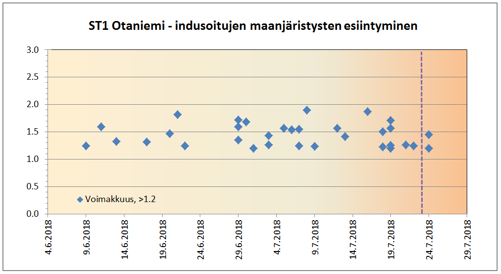 Aiheutuneet suurimmat järistykset 24.7.-18 mennessä ovat olleet suuruudeltaan 1.9.